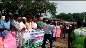 নওগাঁর রাণীনগর রেলগেটে ওভারব্রীজ/আন্ডারপাস নির্মাণের দাবিতে মানববন্ধন