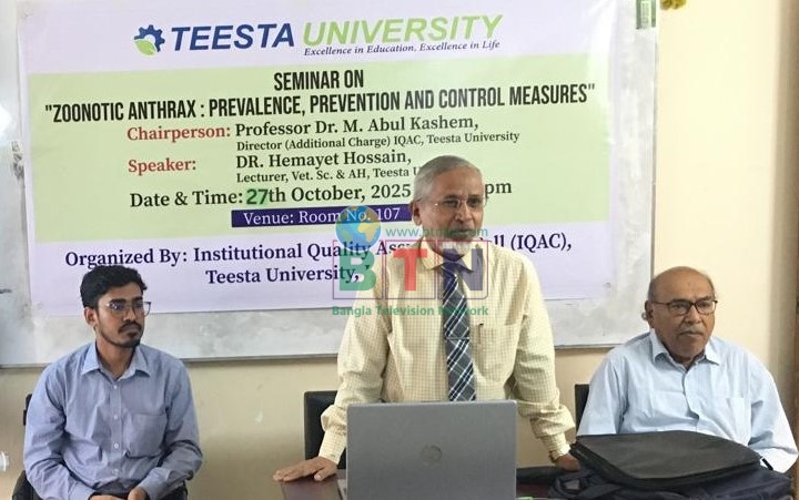 অ্যানথ্রাক্স প্রতিরোধে তিস্তা বিশ্ববিদ্যালয়ে বৈজ্ঞানিক সেমিনার অনুষ্ঠিত