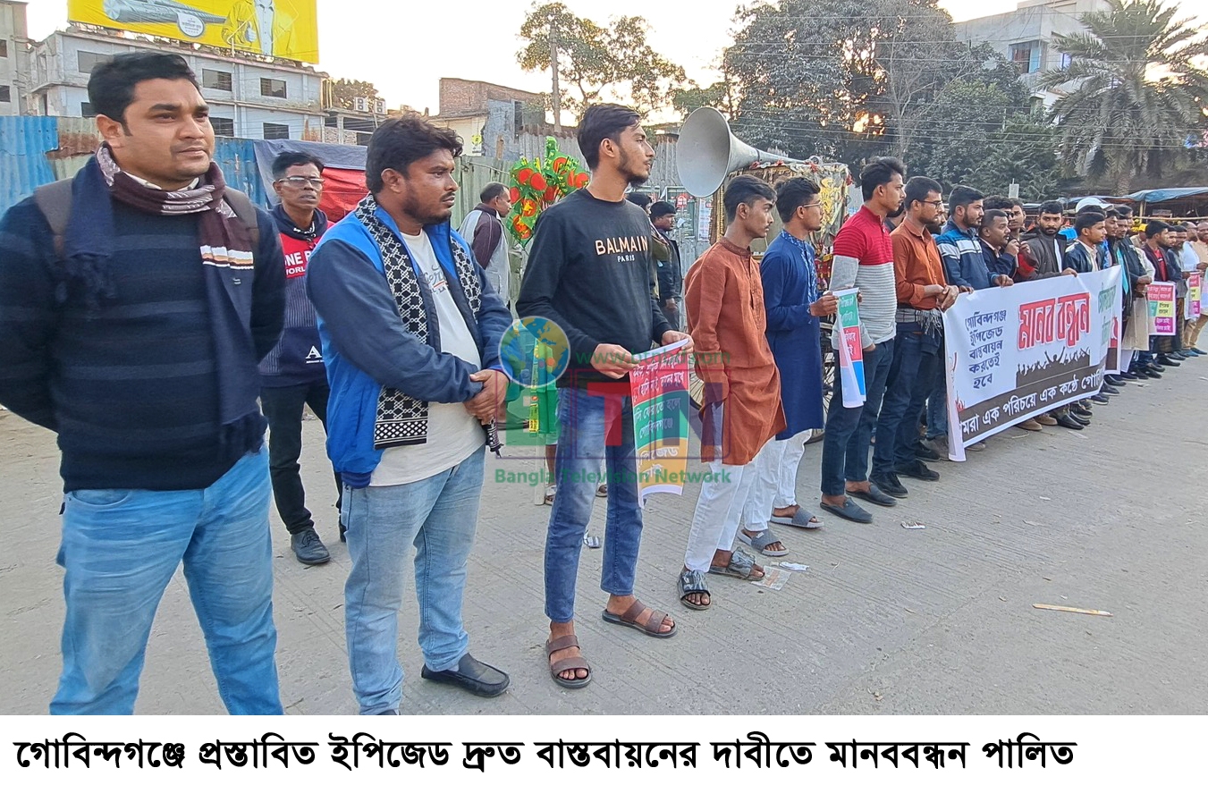 বিকেল ৪টা থেকে ঘন্টাব্যাপি পালিত এ মানববন্ধন কর্মসূচী পালনকালে বক্তব্য রাখেন গোবিন্দগঞ্জ নাগরিক কমিটির আহবায়ক আব্দুল মতিন মোল্লা, সেনাবাহিনীর অবসরপ্রাপ্ত সার্জেন্ট আবু রায়হান ও আব্দুর রাজ্জাক, যুব জামায়াত নেতা ওমর ফারুক, যুবদল নেতা মেহেদী হাসান, বৈষম্য বিরোধী ছাত্র আন্দোলনের নেতা মাকসুদ রহমান, অয়ন সুলতান, ইমরান আকন্দ, মোস্তাকিন আহম্মেদ, শরিফ শুভ, আবু তাহের, স্বাধীন, আরিফ ও আব্দুল আউয়াল প্রমুখ। বক্তারা অনতিবিলম্বে গোবিন্দগঞ্জে প্রস্তাবিত ইপিজেড বাস্তবায়নে দ্রুত পদক্ষেপ গ্রহণ করতে সংশ্লিষ্ট কর্তৃপক্ষের নিকট জোর দাবী জানান।