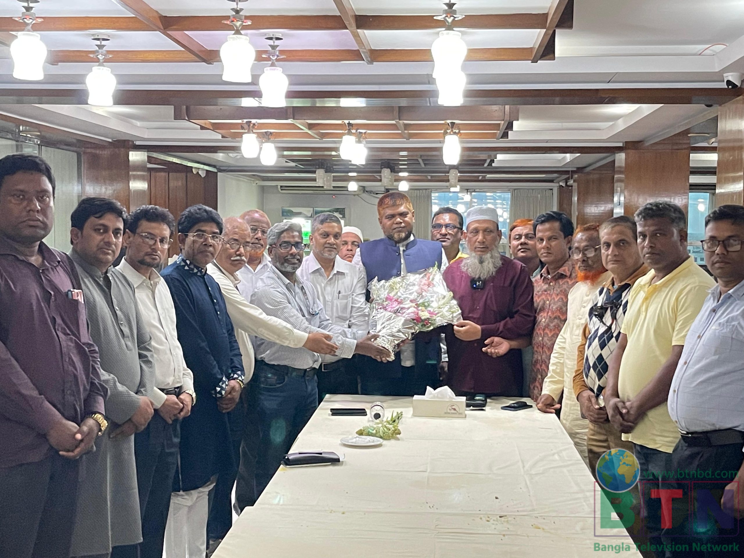 ২৮ মার্চ রংপুর হোটেল নর্থভিউ কনফারেন্স রুমে জাতীয় সাংবাদিক সংস্থার রংপুর বিভাগীয় বিশেষ সভায় প্রধান অতিথি কেন্দ্রীয় মহাসচিব আলমগীর গনি এবং প্রধান আলোচক কেন্দ্রীয় নীতি-নির্ধারক পরিষদের সদস্য সচিব মুহাম্মদ মনজুর হোসেনকে ফুল দিয়ে বরণ করছেন রংপুর বিভাগীয় সভাপতি আশরাফ খান কিরণ।