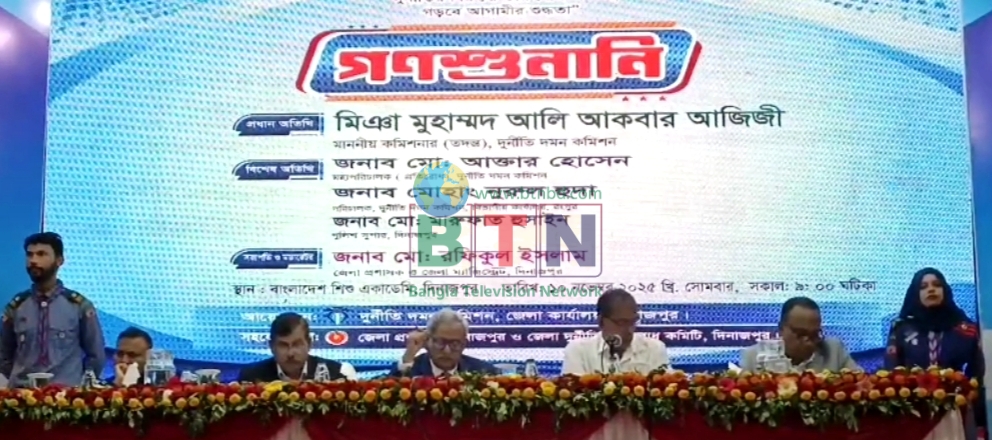আজ সোমবার (১০ নভেম্বর) দিনাজপুর বাংলাদেশ শিশু একাডেমি মিলনায়তনে আয়োজিত গণশুনানিতে প্রধান অতিথি হিসেবে উপস্থিত ছিলেন, দুদক কমিশনার (তদন্ত) মিঞা মুহাম্মদ আলি আকবার আজিজী।