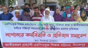 দিনাজপুরে লাগাতার কর্মবিরতি ও প্রতিবাদ সমাবেশে শিক্ষকদের আল্টিমেটাম, দাবী মানা না হলে শিক্ষার্থীদের নিয়ে রাজপথে নামা হবে।