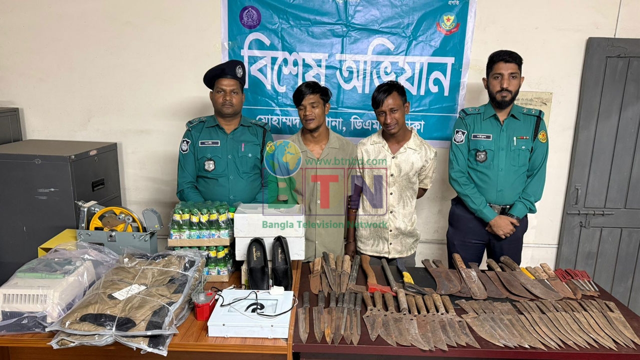 নিজস্ব প্রতিনিধি: রাজধানীর মোহাম্মদপুরে বিশেষ অভিযান পরিচালনা করে বিপুল পরিমাণ ধারালো অস্ত্র, চোরাই মালামালসহ শফিকুল ইসলাম (২২) ও শরীফ (২৩) নামে দুইজনকে গ্রেপ্তার করেছে পুলিশ।