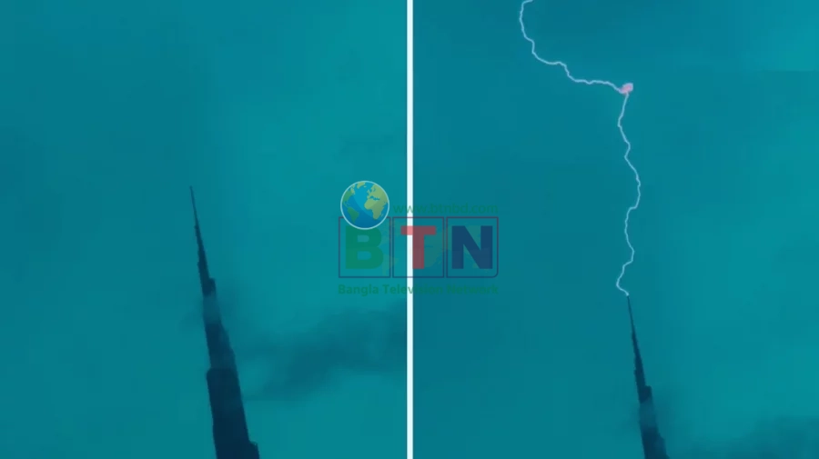 বৃহস্পতিবার (১৮ ডিসেম্বর) থেকে দুবাইয়ে শুরু হওয়া টানা বর্ষণ ও ঝোড়ো হাওয়ার প্রলয়ংকরী আবহাওয়ার মধ্যেই এই প্রাকৃতিক দৃশ্যটি ধরা পড়ে। ১৬৩ তলা বিশিষ্ট ২ হাজার ৭১৭ ফুট উচ্চতার এই বিশাল ভবনে বজ্রপাত হলেও এর কোনো ক্ষয়ক্ষতি হয়নি বলে নিশ্চিত করা হয়েছে।