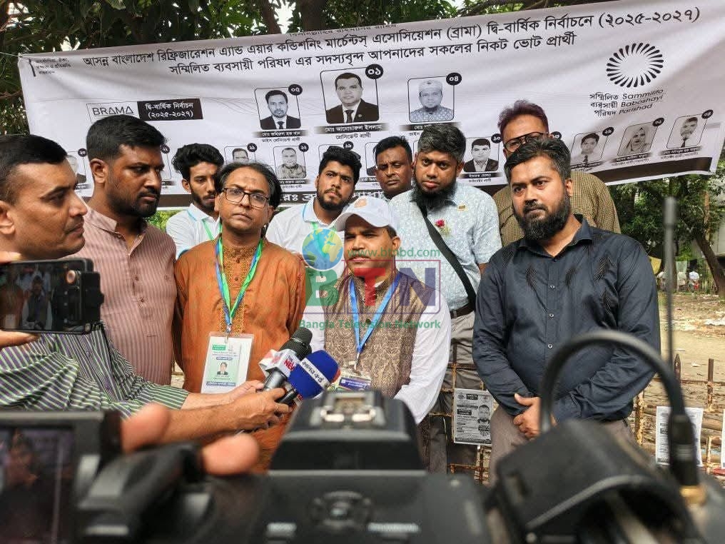 মারুফ সরকার, নিজস্ব প্রতিবেদক: বাংলাদেশ রেফ্রিজারেশন অ্যান্ড এয়ার কন্ডিশনিং মার্চেন্টস অ্যাসোসিয়েশন (ব্রামা)-এর বহুল প্রতীক্ষিত নির্বাচনে সম্মিলিত ব্যবসায়ী পরিষদ নিরঙ্কুশ জয় পেয়েছে। দীর্ঘ ১২ বছর পর অনুষ্ঠিত এই বাণিজ্যিক সংগঠনের নির্বাচনে সভাপতি পদে বিপুল ভোটে নির্বাচিত মো. আনোয়ারুল ইসলাম। এছাড়া সহ-সভাপতি পদে জহিরুল ইসলাম খান ও মো. মাঈণ উদ্দিনসহ নিরঙ্কুশ জয় পেয়েছে আনোয়ারুল ইসলাম নেতৃত্বাধীন সম্মিলিত ব্যবসায়ী পরিষদ প্যানেল।